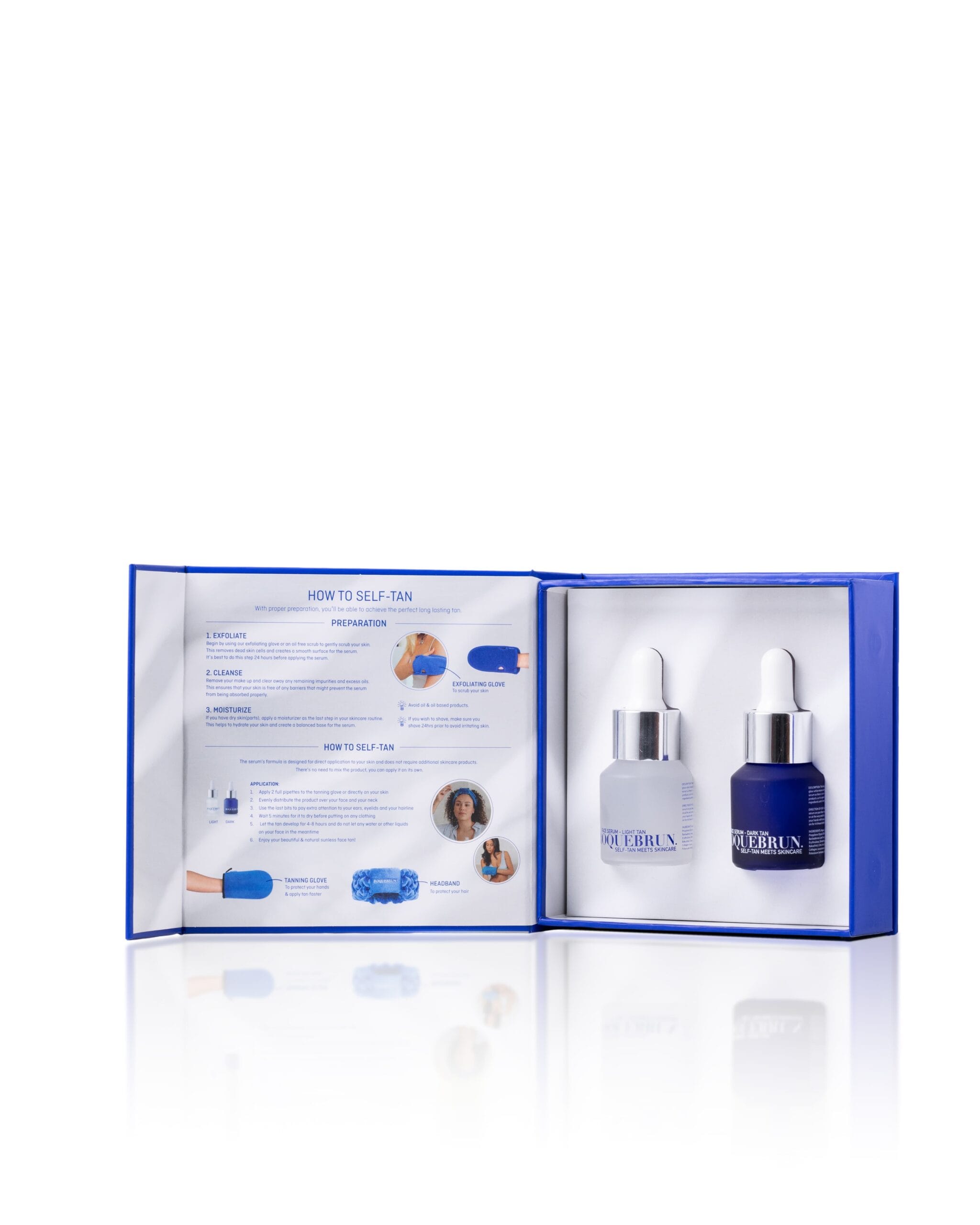 Hoe: Breng het gezichtsserum direct aan op een schone huid. Gebruik het zelfbruinende serum ’s ochtends of ’s avonds, alleen of in combinatie met je bestaande huidverzorgingsritueel. De hoofdingrediënten plantaardige retinol, hyaluronzuur, collageen en aloë vera sluiten perfect aan bij de behoeften van je huid.
