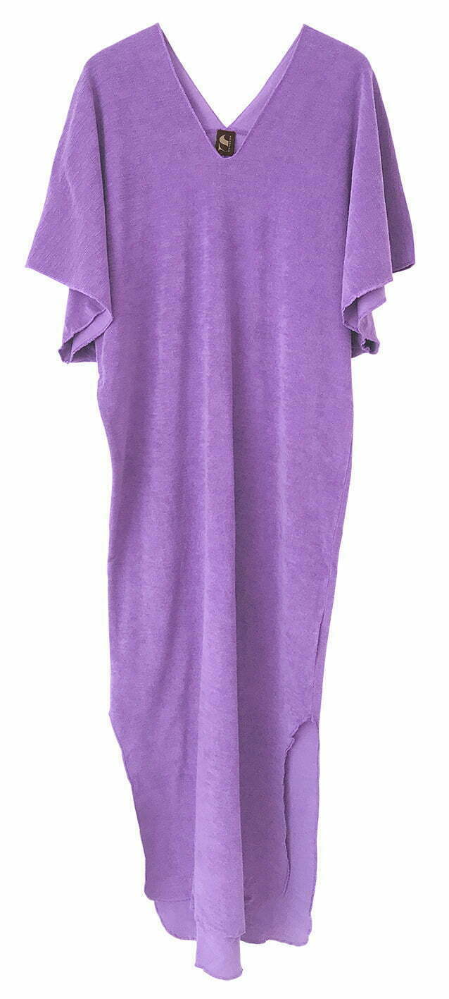 De V-hals kaftans hebben halflange mouwen en een hoge zijsplit. Of je nu naar het strand gaat, geniet van een zomerse dag met vrienden in de tuin, net de douche uitkomt, of gewoon lekker comfortabel thuis bent, de kaftans zijn geschikt voor iedere gelegenheid.