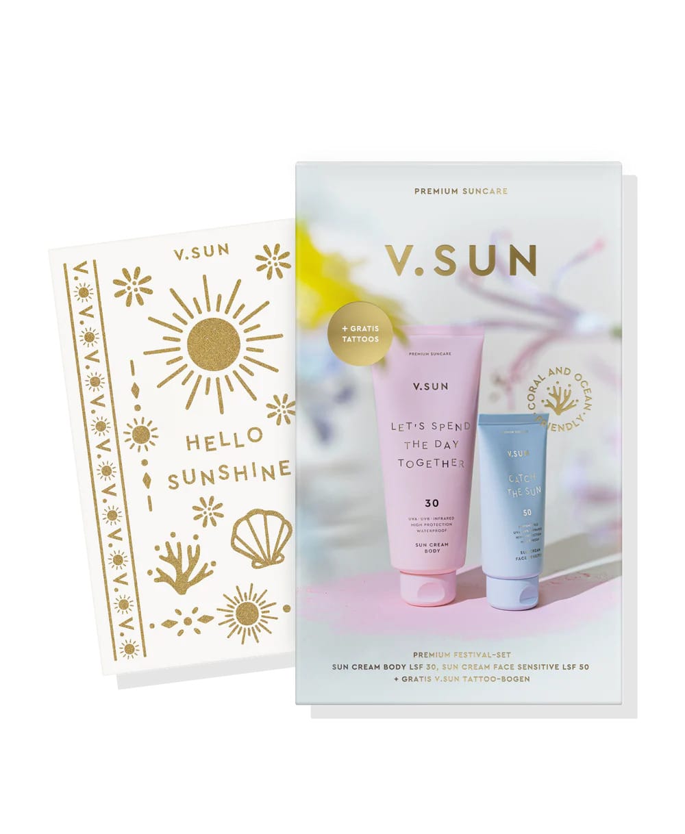 Of je nu staat te dansen op je favoriete festival of geniet van een zonovergoten dag op het strand: je huid verdient de beste zorg. De V.SUN Festival Set combineert hoogwaardige zonbescherming met een vleugje luxe. Het beschermt niet alleen tegen schadelijke uv-stralen, maar verzorgt ook je huid als een premium bodylotion.