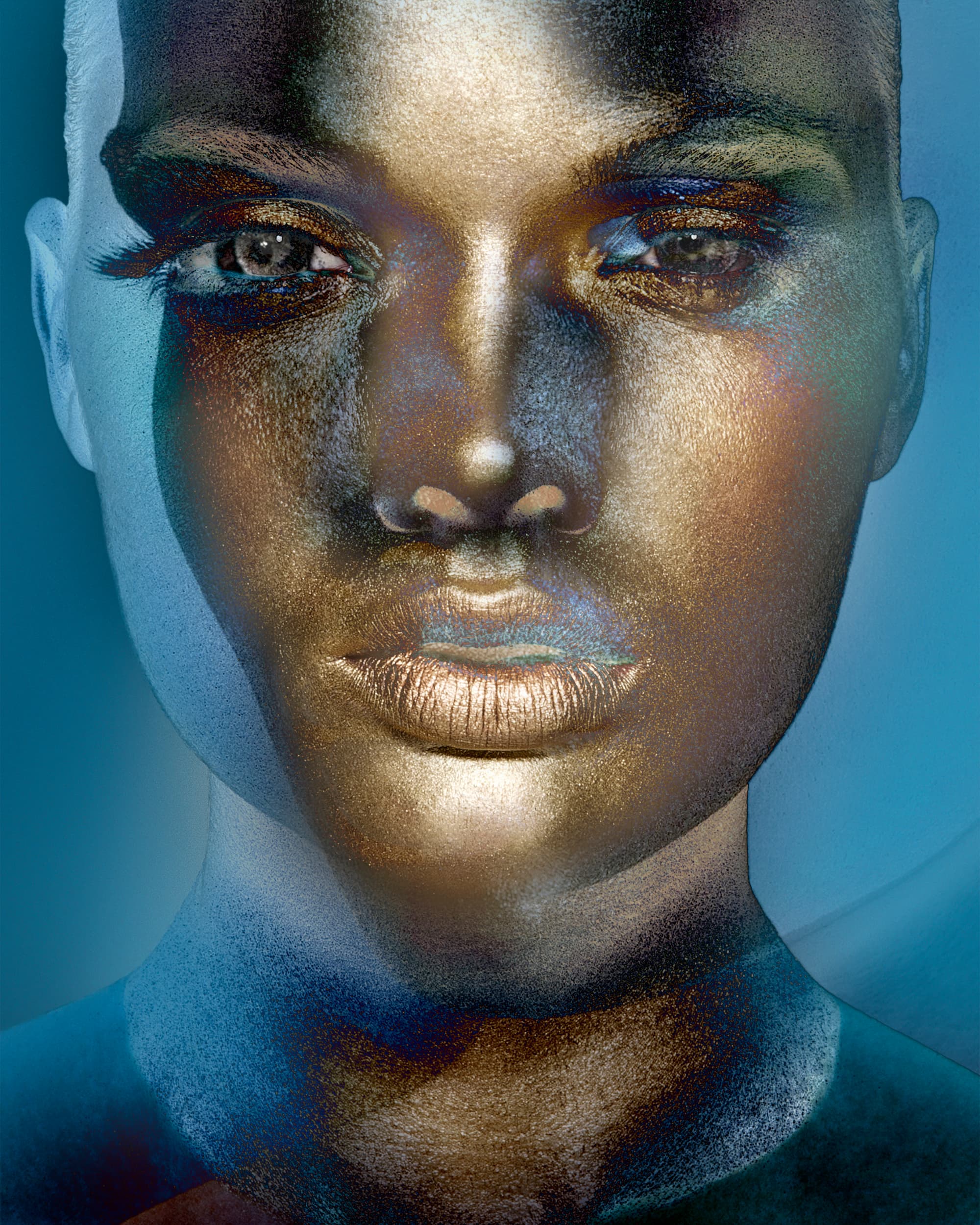 Het portret wordt afgedrukt op een hoge kwaliteit Alu-Dibond. Alu Dibond is een merknaam voor een type composietplaat die bestaat uit twee lagen aluminium en een kunststof kern.